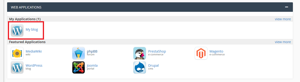 To create a staging site for WordPress via Installatron, you first need to find your installed WordPress application under Installatron when logged into cPanel.